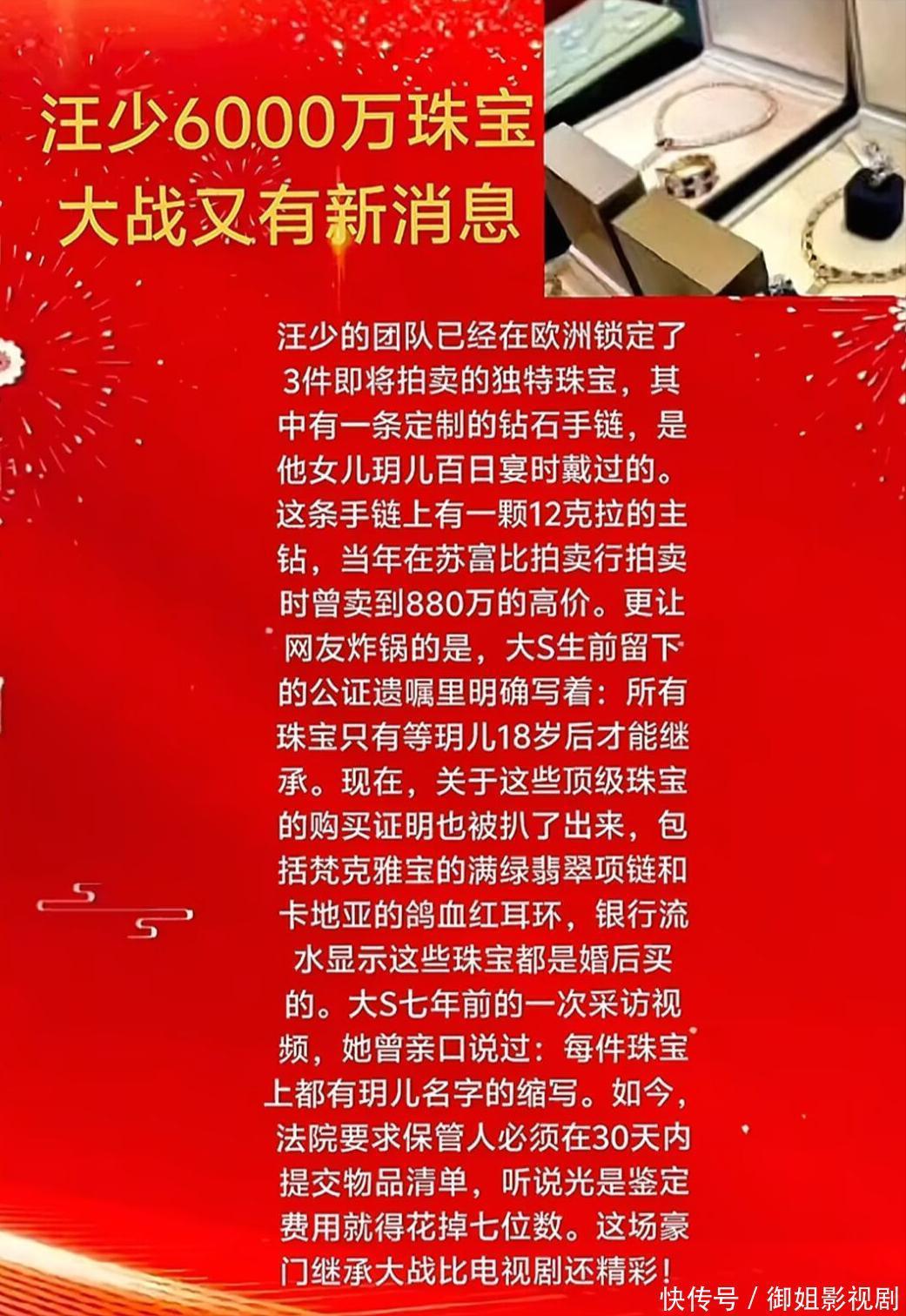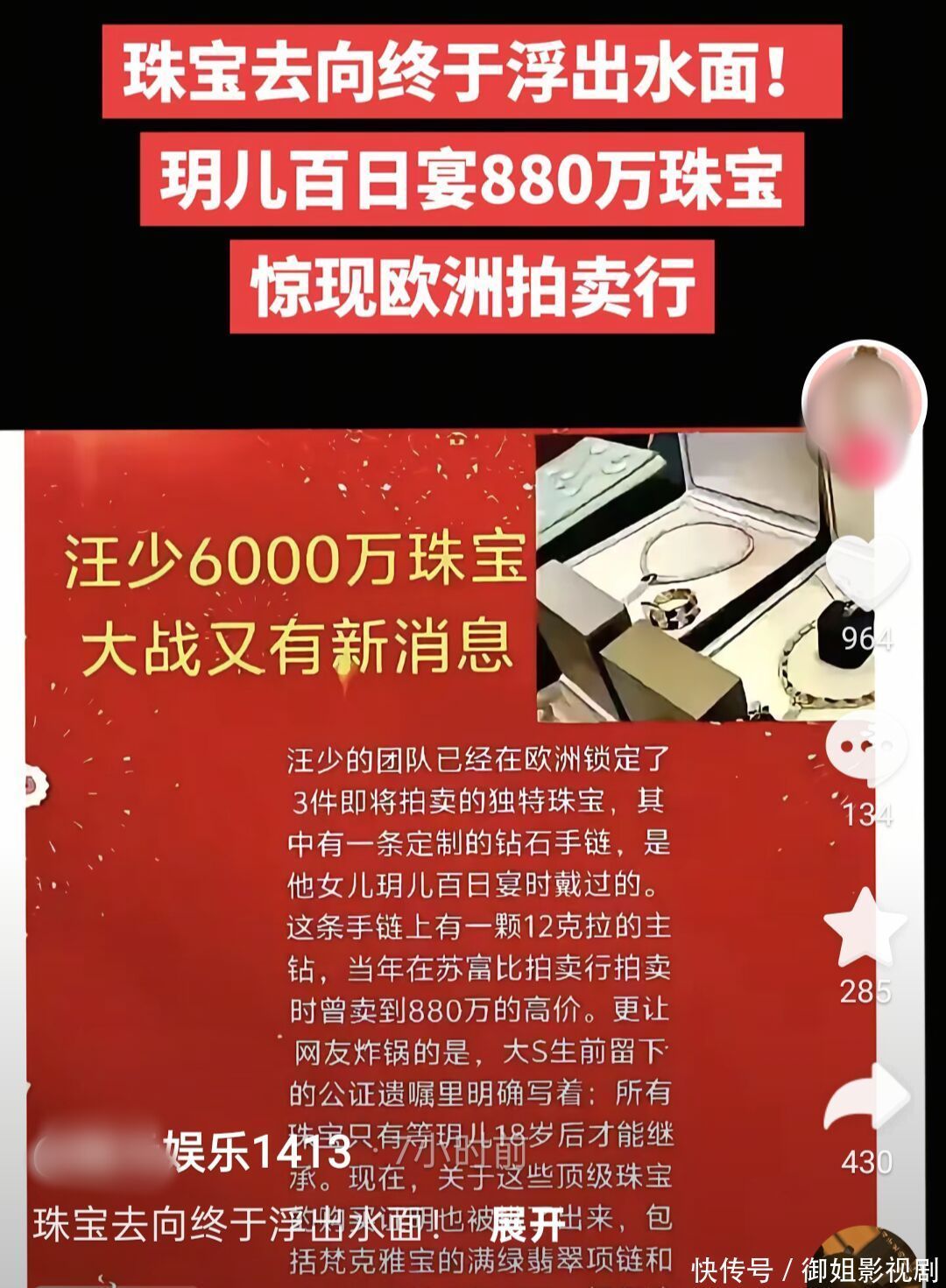 曝大S留给女儿的珠宝出现在国外拍卖行,是谁在争夺小玥儿的财产
